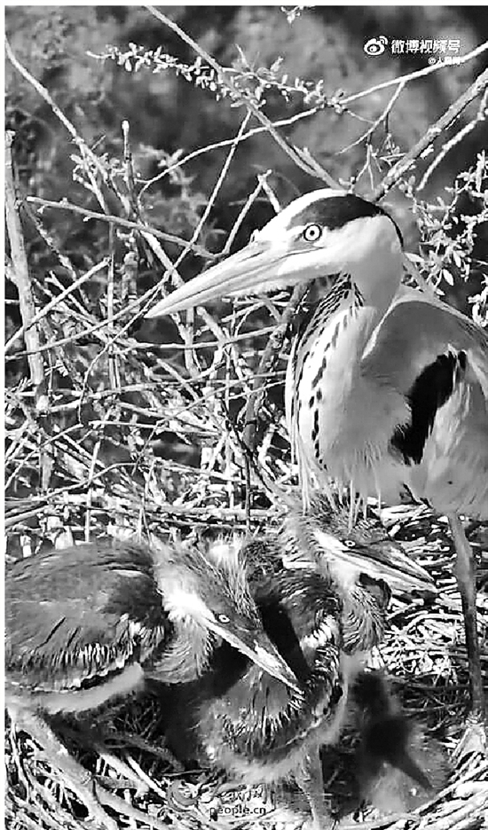 近日,内蒙古乌审旗萨拉乌苏国家湿地公园迎来苍鹭宝宝破壳潮,数百对苍鹭父母衔枝筑巢于湿地乔木顶端,绒羽稀疏的雏鸟在亲鸟轮流喂养下茁壮成长,新生命的啼鸣与春日合奏出生机盎然的和弦。