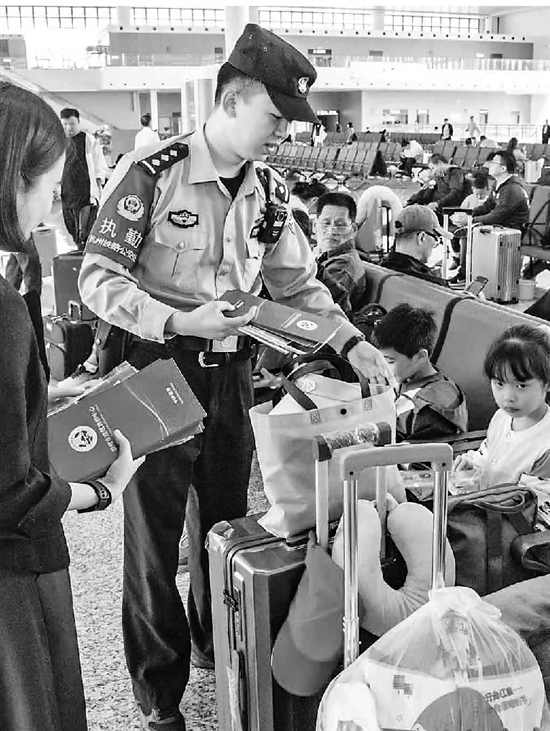 列车疾驰的1个多小时里,乘警与高铁乘务员创新融合歌曲、相声、变脸等艺术形式开展普法宣传;“法姐姐”和律师调解员通过典型案例讲解列车上违法行为后果。抵达温州北站后,候车厅内的法治宣传站吸引不少旅客驻足。现场展示了由杭州铁路公安处与浙江法治报、温州市司法局、温州市普法办和温州市瓯越调解中心共同设计的青年乘警、青年律师、“法姐姐”形象的动漫IP,并向群众发放原创漫画《列车警示行为口袋书》,生动解读了不文明乘车、扒阻车门等常见警情。