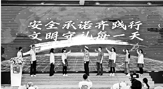 近日,新昌县澄潭中学对接新昌县公安局交警大队,在高三年级的十八岁成人礼上,联合开展《守护成长 担当于行》交通安全宣讲活动。交警通过真实案例,向1500余名师生和家长介绍交通安全常识,示范安全头盔正确佩戴方式,还将大货车道具车带上讲台,让大家直观感受大车视线盲区。活动中,学生代表发出《安全承诺齐践行 文明守礼每一天》倡议书,倡议大家共同遵守交通法规。 通讯员 吴钢 章涵天