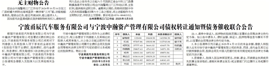 宁波甬辰汽车服务有限公司与宁波中瀚资产管理有限公司债权转让通知暨债务催收联合公告