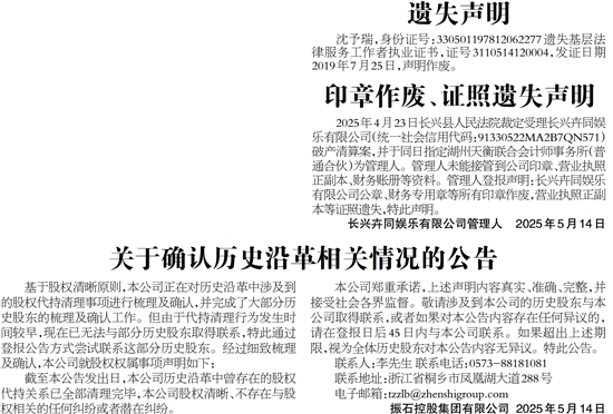 本公司郑重承诺,上述声明内容真实、准确、完整,并接受社会各界监督。敬请涉及到本公司的历史股东与本公司取得联系,或者如果对本公告内容存在任何异议的,请在登报日后45日内与本公司联系。如果超出上述期限,视为全体历史股东对本公告内容无异议。特此公告。