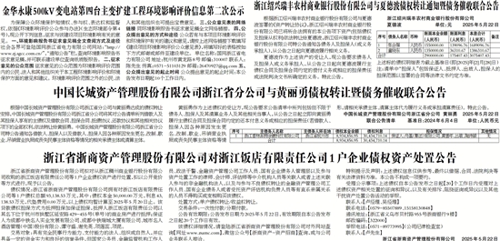 中国长城资产管理股份有限公司浙江省分公司与黄丽勇债权转让暨债务催收联合公告