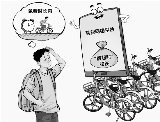 近来,共享单车骑行“被超时”成为消费者的槽点,有的骑行结束关锁后仍被系统通知“数小时未锁车”,有的免费时长内的骑行却“被超时”扣钱。