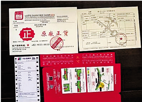 | 记者在直播间购买的所谓“海外渠道货”,随附的海关税单、POS签购单等交易明细均为空白。 记者 陈潇雨 摄 |