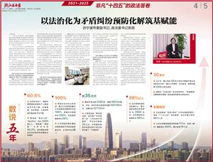 张丽:展望“十五五”,法治竞争力是城市竞争力的一项重要指标。接下来,我们将深学笃行习近平法治思想,以“先行者”姿态扛起建设更高水平法治宁波新使命,以“谱新篇”追求开创良法善治新局面,在矛盾纠纷的预防上实现前端化解向源头防范转变,为进一步全面深化改革、在中国式现代化新征程上实干先行提供坚实法治保障,重点在四个维度寻求突破性进展。