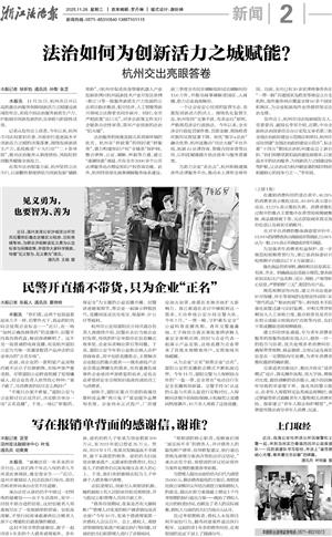 本报讯 11月25日,杭州市召开以高质量法治服务保障创新活力之城建设新闻发布会,系统介绍法治服务新质生产力、护航城市创新发展的扎实举措与阶段性成效。