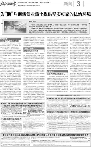 为“浙”片创新创业热土提供坚实可靠的法治环境