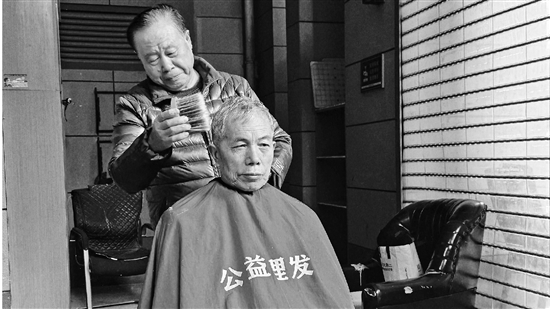 | 陆银祥为居民剪发 |