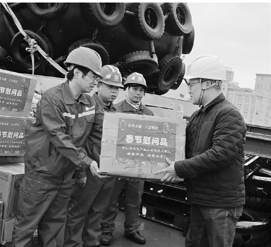 | 春节慰问礼包送上了“平太荣冷2”运输船 |