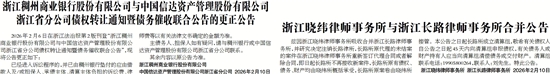 2026年2月6日在浙江法治报第2版刊登“浙江稠州商业银行股份有限公司与中国信达资产管理股份有限公司浙江省分公司债权转让通知暨债务催收联合公告”,现将公告更正如下:
