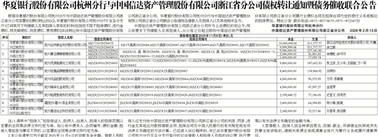 华夏银行股份有限公司杭州分行与中国信达资产管理股份有限公司浙江省分公司债权转让通知暨债务催收联合公告