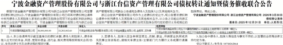 根据宁波金融资产管理股份有限公司与浙江台信资产管理有限公司签署的《债权转让协议》,宁波金融资产管理股份有限公司已将其对债权转让清单中所列债务人及其担保人享有的主债权及担保合同项下的全部权利依法转让给浙江台信资产管理有限公司。宁波金融资产管理股份有限公司与浙江台信资产管理有限公司联合公告通知各债务人及担保人以及其他相关各方。
