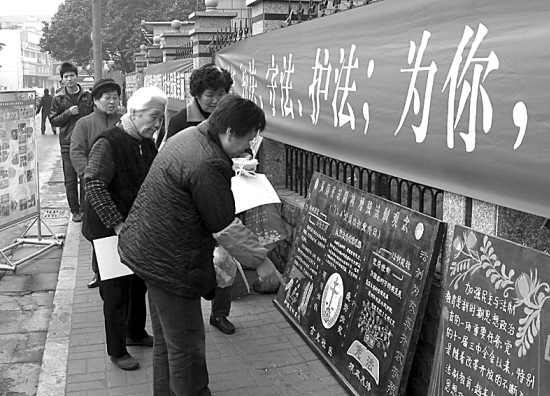 昨天,古荡街道利用展板向社区居民开展法制宣传。■汪夕 摄