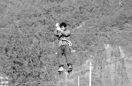 12月7日,笔者在建德市洋溪街道洋安村看到,一电工正沿着一根电线在空中操作,可却没戴安全帽,真是为他的安全捏一把汗。