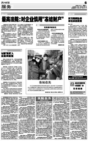 詹四洪:本院对原告杭州海枫木业有限公司诉被告詹四洪买卖合同纠纷一案,已审理终结。现依法向你公告送达(2008)拱民二初字第1224号民事判决书。自公告之日起60日内来本院领取民事判决书,逾期则视为送达。如不服本判决,可在公告期满后15日内向本院递交上诉状及副本一式二份,上诉于浙江省杭州市中级人民法院。逾期未上诉的,本判决即发生法律效力。
