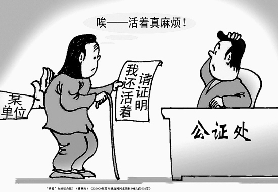 他们是一群土生土长的靖江人,上世纪60年代去外地工作,退休后回到了故乡,按政策每月领取养老金。但原单位为防止养老金被冒领,要求他们须不定期证明“自己还活着”,要求他们拍“个性”照片到当地公证处“开证明”。