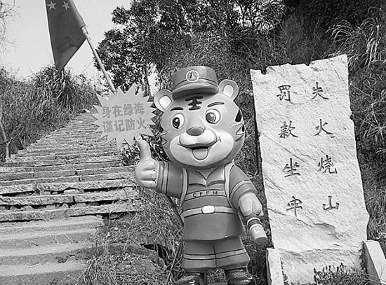 这是12月17日上午笔者在台州市路桥区金清镇一林区拍摄到的卡通森林防火宣传标牌。