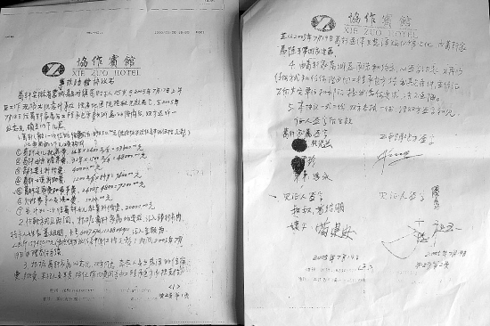 葛轩死亡“事故赔偿协议书”和其家属的“书面要求”。■本报记者 王志浩 摄