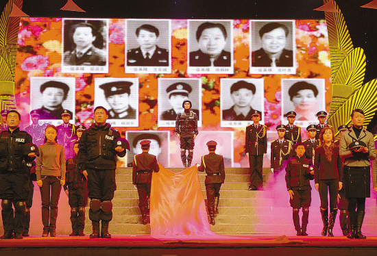 当电子屏幕跳出“改革开放以来,浙江先后有163名民警为国捐躯。他们用鲜血书写了弥足珍贵的平安,用生命铸刻了对共和国的忠诚”的语句时,现场一片肃静。当身着老制服、胸前缀满奖章的全国公安一级英模、现年80岁的温州市公安局水上分局老民警李本春走上舞台时,全场爆发了