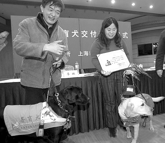 当日,上海市导盲犬交付使用仪式在市残疾人康复职业培训中心举行,首批2只经过幼犬培训、专业培训及磨合适应培训的导盲犬正式上岗。