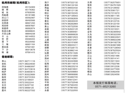 您若在新年开始未按时收到2010年《浙江法制报》或发现存在其他有关发行服务质量问题,请拨打您所在地的邮政投诉电话: