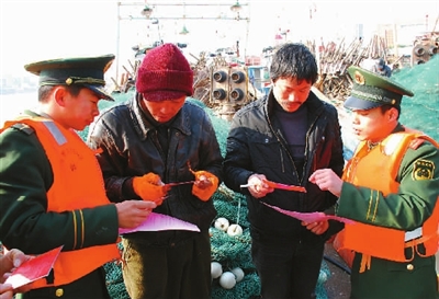 春节临近,在海上从事渔业捕捞的民工开始陆续返乡。浙江公安边防总队海警第二支队针对海上渔船人口流动大、劳资纠纷多等问题,加大对重点海域的巡逻力度,并上船为民工讲解维权法律知识。