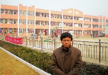 曹鑫校长站在校园里