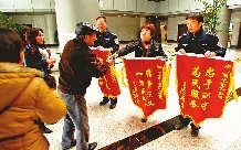 赵秧(左二)送锦旗给丽水市公安局