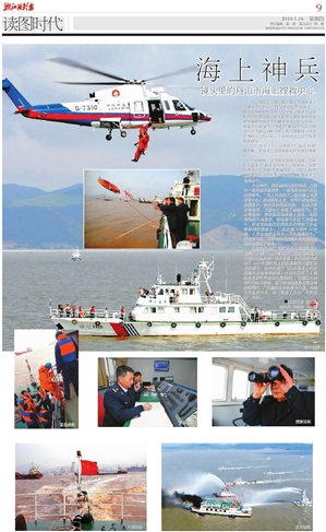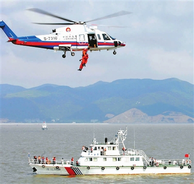 在返航的途中,同行的舟山海事局相关负责人介绍,2009年以来,舟山海事局大力推动巡航救助一体化进程,积极推进并参加了2009年国家海上搜救桌面演习暨东海搜救演习,空中的直升飞机和海面上的救援船只配合非常默契,并组织编写了《遇险信息接收传递和处置制度》,对辖区水域实行网格化管理,在不断加强信息化装备建设的同时,广泛整合社会资源和力量,构建立体监控体系,极大促进了舟山“平安海区”建设。