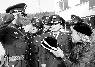 今年80岁的丁阿婆有50多年的党龄,解放战争时期也是支前模范。自从蒲西边防派出所在她家门口成立以来,她始终把这帮“兵娃子”当作自己的亲儿子、亲孙子。每个“兵娃子”的鞋码她都一清二楚,每年都要给他们穿上自己亲手一针一线纳的千层底布鞋,30年来共为边防战士纳了1000多双布鞋。■通讯员陈勇范爱锋摄