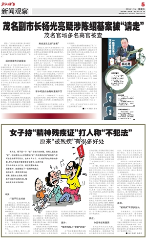 据悉,广东茂名市委常委、常务副市长杨光亮,疑涉嫌陈绍基案已于2009年10月被纪委部门带走调查。而茂名市公安局刑侦支队队长程彬以及茂港区委常委、政法委书记、公安分局局长杨强,前不久也涉嫌严重违纪先后被纪委部门“请走”。