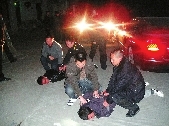 在警方驾驶的车辆即将与黑色广本车“擦肩而过”时,一名“便衣”下了车,以佯装问路吸引车上人员注意,另两名“便衣”则下车迅速靠近。3个人同时拉开车门,将来不及反应的驾驶员、坐在副驾驶室和后座上的人共3人一举制服。