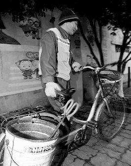 虽然室外温度很低,但杨光长才扫了10分钟,就已经满头大汗了。他得赶在清洁直运车到来之前先把包干地区地面打扫干净,把垃圾装在垃圾箱内。