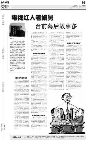 去年年初的时候,听志愿者圈子里的朋友说起,电视台的《钱塘老娘舅》节目正在公开招“老娘舅”。基本的条件,就是要有说服力,更要有热心肠。圈子里的人都觉得我挺合适的,我自己听了心里也痒痒的,于是就报了名。