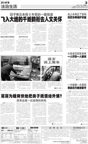 年过九旬的老人王某独居在杭州翠苑五区12幢,退休前她是杭州某中学的教师。2008年1月30日,突如其来的中风让王某失去了记忆和语言能力,之后,一直在省立同德医院接受治疗。