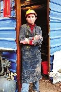 在洪林所住工棚,穿着旧西装、系着工作围裙的他,在砖块搭起的床铺上摸出包了一层又一层的崭新的出国护照:“看嘛,我护照都办好了,一找到翻译,就去签证。”他一脸憨笑。