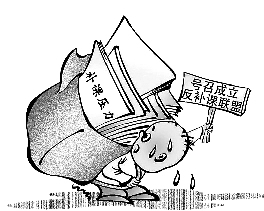 寒假还没正式开始,不少学校的假期补课日程就已排得满满的。,近日,一自称是湖南益阳六中高二学生的网友在网上发出反补课倡议书,并号召全国学校成立“中国反补课学生联盟”,凡加入联盟的学校,都将会发一块统一制作的牌匾。■陶小莫画