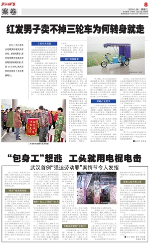 工人拜红军证实,2008年3月15日,他在汉口火车站对面长途汽车站准备回陕西老家,叶华兵过来游说:“有事给你做,每天50块工钱,还有烟抽。”拜红军就跟叶华兵来砖厂上班,结果一分钱没拿到。拜红军想走,没逃出多远就被叶华兵抓回来毒打一顿。拜红军说,前后被叶华兵用电棍“电”了7次。户口本也被叶华兵扣留,无法回家。