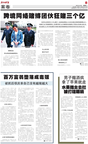 有意思的是,桐庐的二级代理申屠某被抓时,正在家里上网赌博。申屠某在2009年12月14日至21日间的涉赌资金就达8000多万。其下家参赌人员吴某仅在那段时间便投入200多万元赌博,因参与网络赌博,吴某经营的制笔厂陷入了困境。
