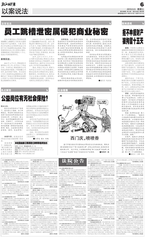 谢海洋、谢周明、叶家文:本院受理原告浙江谭记汽车贸易有限公司与被告你们担保追偿权纠纷一案,现依法向你们公告送达起诉状副本、应诉通知书、举证通知书、合议庭组成人员通知书及开庭传票等法律文书。自发出公告之日起,经过60日即视为送达。提出答辩状和举证的期限分别为公告期满后的15日和30日内。并定于2010年8月9日10时在本院第九法庭公开开庭审理,逾期将依法缺席裁判。 宁波市江东区人民法院