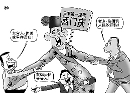 基于中国古典文学名著给地方带来巨大文化旅游收益,围绕名著《金瓶梅》引发了“西门庆故里之争”,涉及山东阳谷县、临清县和安徽的黄山市。近十年来,三地都纷纷举起“西门庆故里”的招牌,西门庆也从“大淫贼”变成了当地的文化产业英雄。 ■焦海洋画