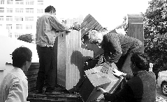 温岭市泽国派出所对群众举报的老虎机窝点,及时查扣处罚。图为近日上午,该所将查缴的200多台老虎机运往拆解场销毁,再进行回收利用。 ■通讯员叶明銮摄