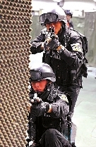 除了动态训练,针对实战中心理素质的静态训练也很多,最为常见的就是空枪瞄准:手持手枪,瞄准目标,纹丝不动———特警队的每个队员都能坚持10分钟以上。
