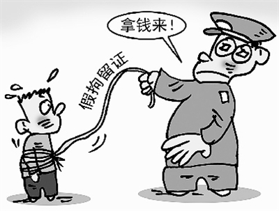 据《新京报》报道,河北灵寿几名农民不符合羁押条件,但依然被警方收押,缴纳保证金后才获释。随后他们发现警方出具的拘留证为假。记者调查发现,警方有两本账,其中一本“灵活执法”,不管抓人和放人都能收钱。 ■唐春成画