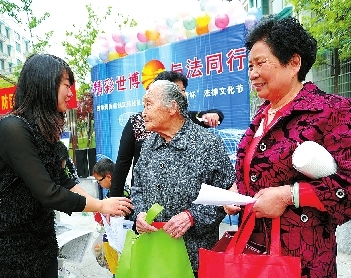 前天,在杭州市江干区四季青街道钱江苑社区举办的“精彩世博,与法同行”法律文化节上,88岁的社区居民王小凤老人站到问答台前跃跃欲试。