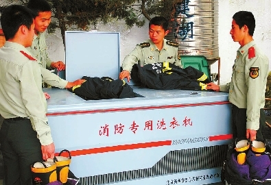 消防员灭火防护服防火、防水,但体积大,还很笨重,对洗涤的要求也挺高,清洗不当的话,就会降低防护服的性能。为此,省消防总队斥资220万元,集中采购了180台专用洗衣机,配发到全省基层执勤中队。