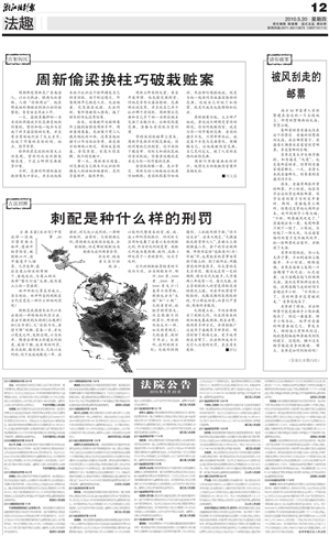 北宋时,统治者又实行折杖法,以杖刑代替原来的苔、杖、徒、流4种刑罚的执行。但同时又沿用和发展了后晋以来的刺配之刑,作为对死刑的宽宥。刺配之刑成为集刺面、杖刑、流配3种处罚于一身的重刑,仅次于死刑。
