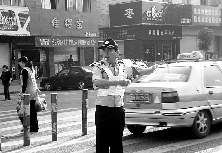 “大妈大爷,别怕!我带你们走。”身着蓝色制服的女“协警”钱海燕,搀扶起老俩口;而此时,另一位“协警”楼小钢已经用手势示意机动车和非机动车辆在斑马线前停下,让行人先行通过。“谢谢你们哦,警察同志!”安全穿过马路的老夫妻向他俩道谢。
