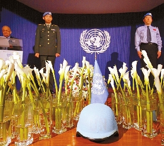 5月29日是第八个“维和国际人员日”。联合国维和行动代表团在世博园联合国馆举行“维和人员国际日”,并启动“维和人员周”,纪念过去14个月国际维和行动中牺牲的200多位维和人员,并为4名在海地殉职的中国维和人员授勋。 ■新华社