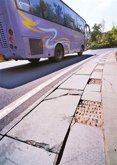 杭州西湖风景区茅家埠村的张先生日前来电反映,三台山路本是条好端端的景观道,却被旅游客车以及随意停车的轿车占领,许多漂亮的长条青石板都被压碎了。